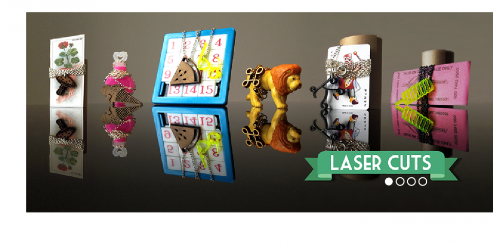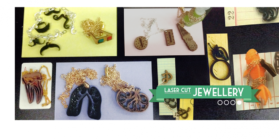 My favourite use of the laser cutter however is for creating beautifully detailed objects: I have exhibited my laser cut jewellery at the V&A Digital Futures and the Willesden Windows project. I’ve also drawn and laser cut an entire alphabet, a time-consuming project, but the results and experience were worth every minute.
